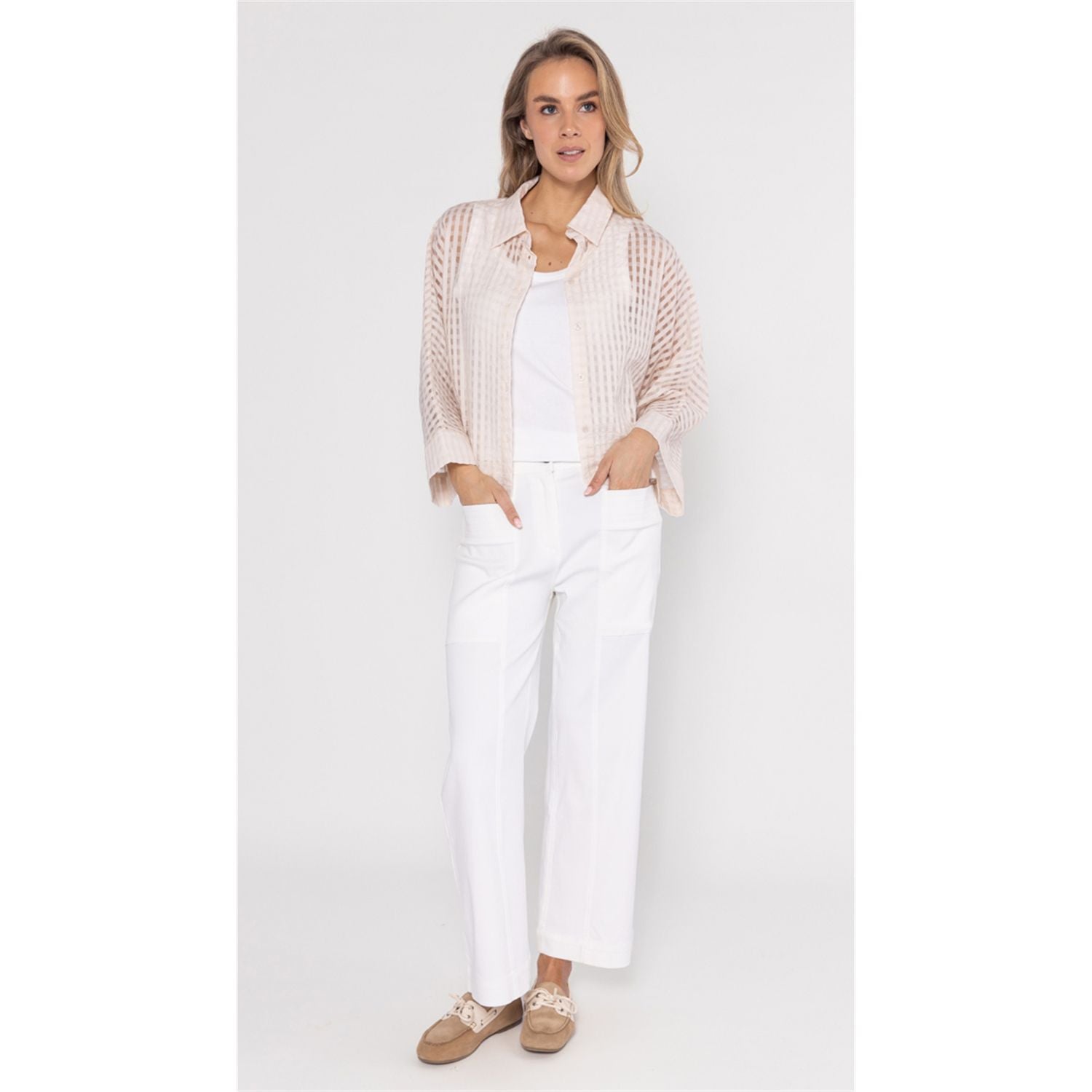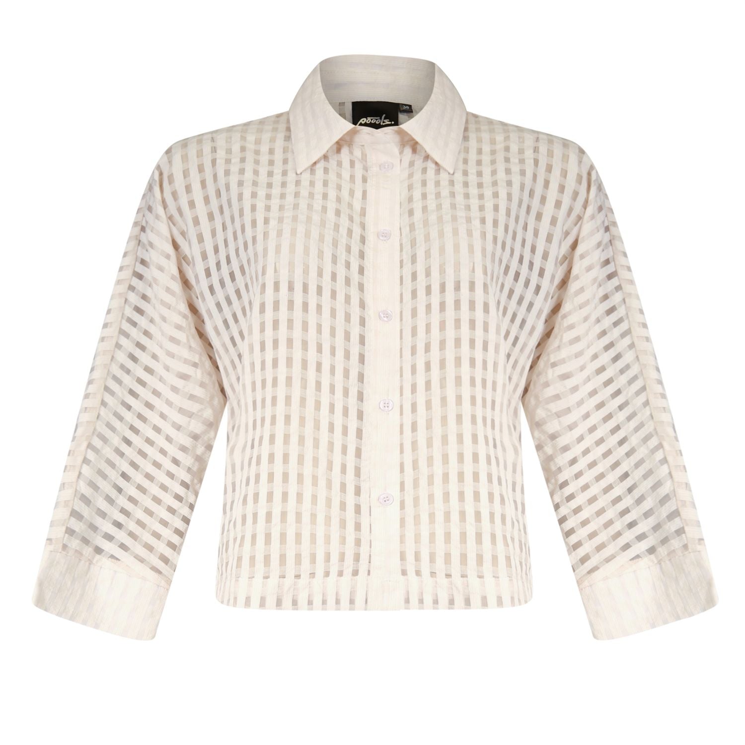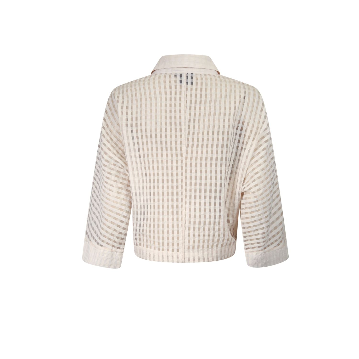 Luchtige blouse met kimono-pasvorm, geruite transparante stof, kraag en knoopsluiting. Gemaakt van katoen-, viscose- en polyamideblend.