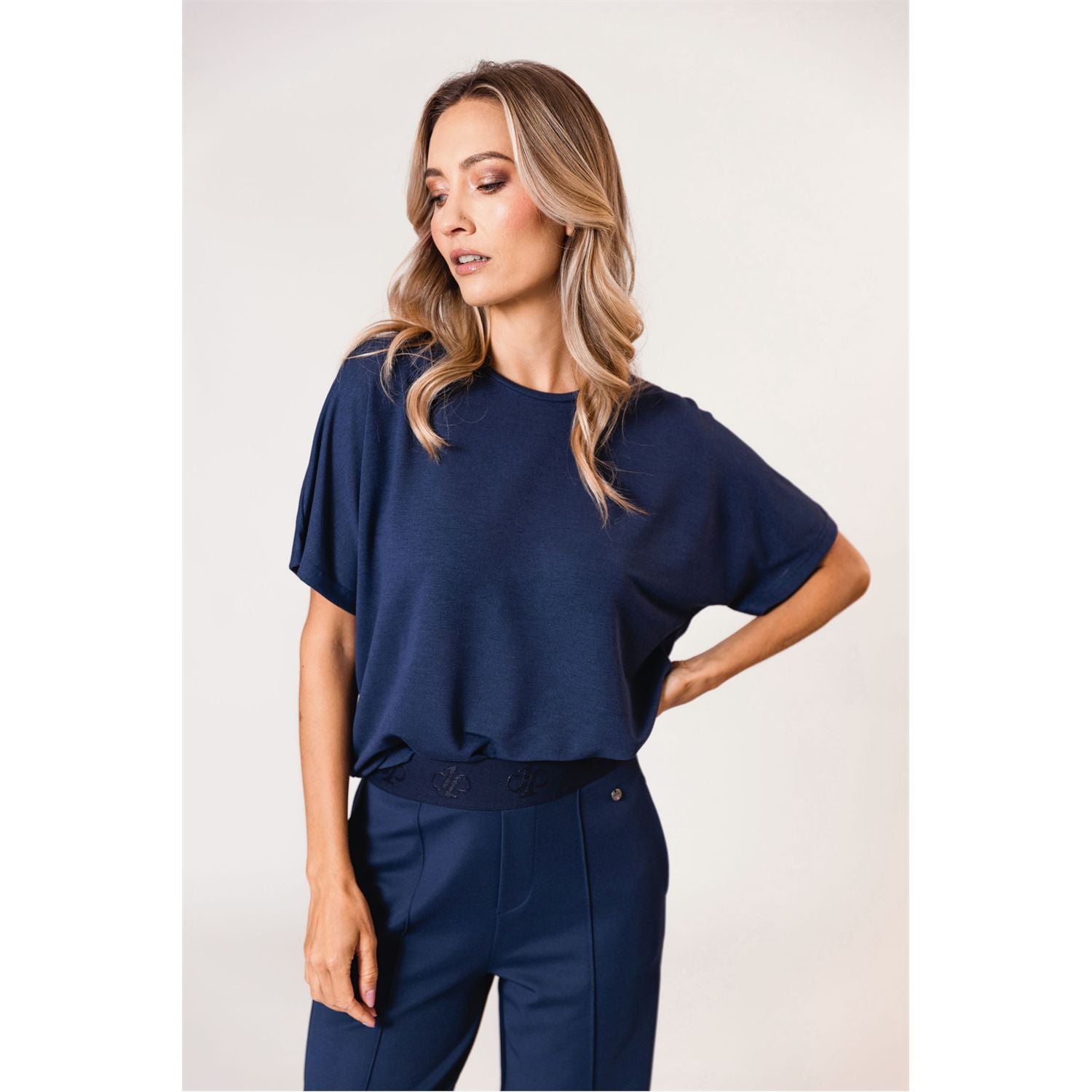 Heerlijk T-shirt met vleermuismouw, ronde hals en tailleband voor een bloezende fit. De jersey stof is soepel vallend en heeft een subtiele glans.