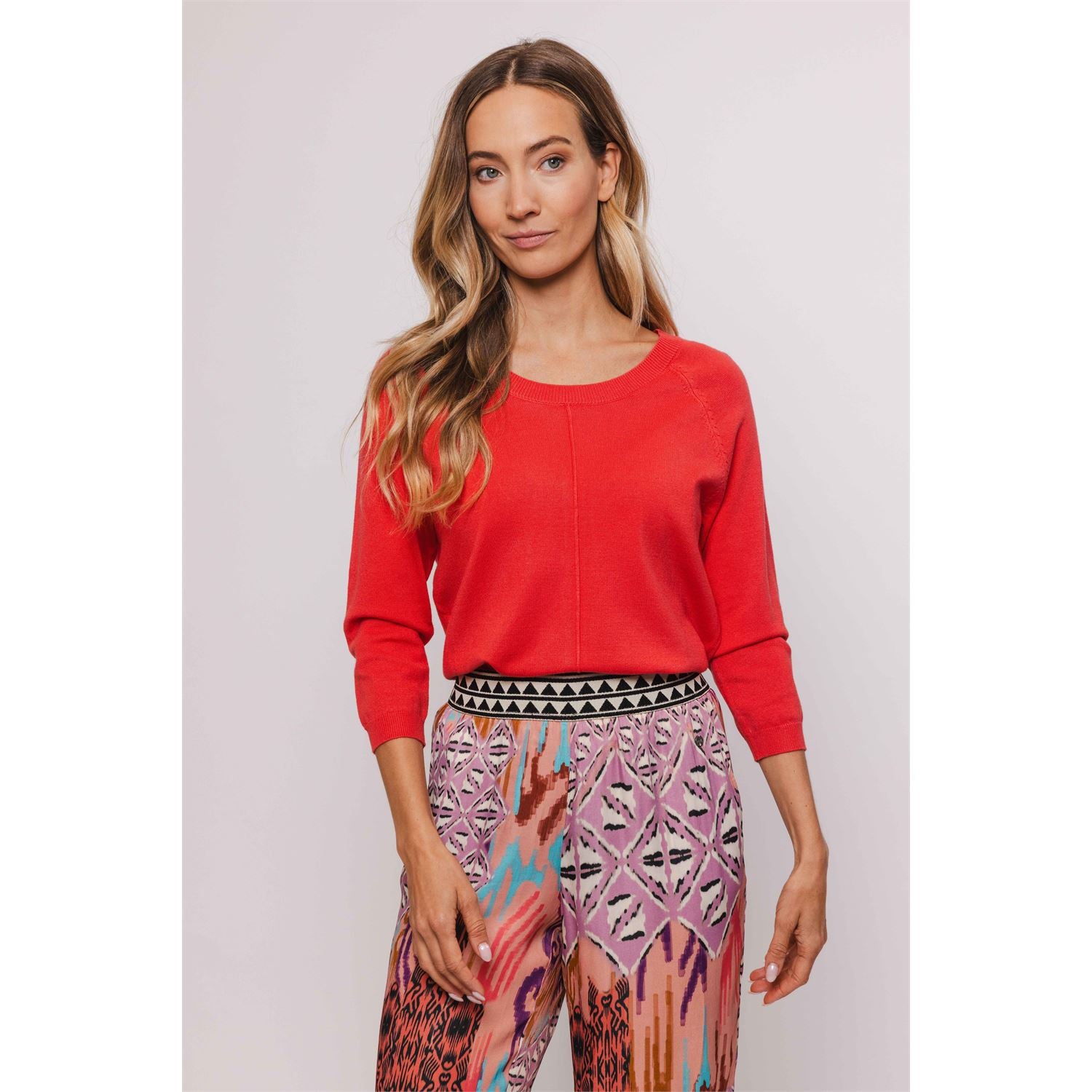 Feinstrickpullover aus Viskose-Mischgarn. Dieser Pullover hat Raglanärmel, einen Rundhalsausschnitt und einen verspielten Schlitz auf der Rückseite.