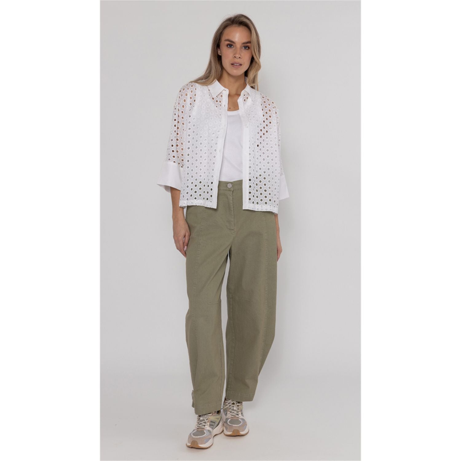 Luchtige blouse van 100% katoen met geborduurde gaten, losse pasvorm, aangeknipte mouw, kraag en knoopsluiting.