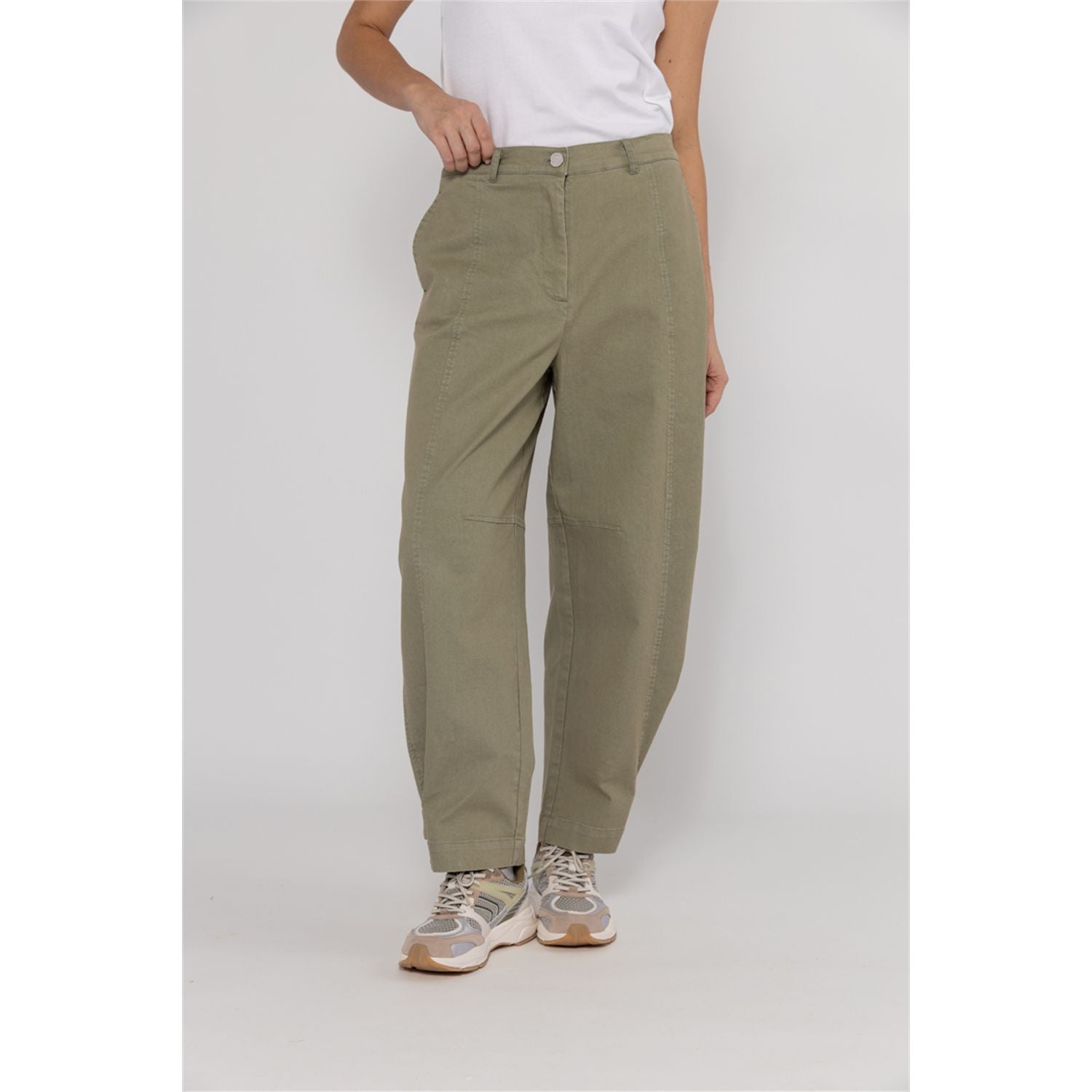 Stoere barrel fit jeans met verstelbare drukknoop onderaan. Comfortabele stretch en trendy look. Combineer met bijpassend jasje!